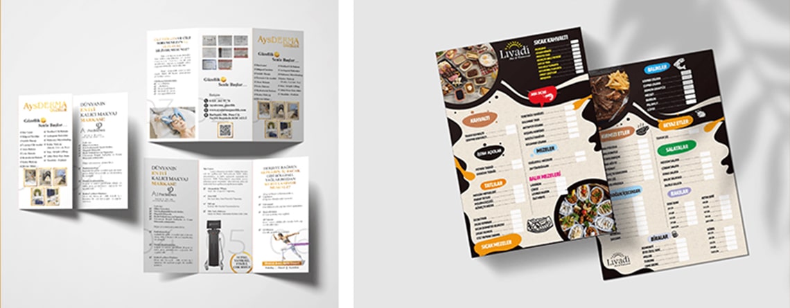 Sadece dış cephe değil, markanızın her noktada görünür olması önemli. İstabela olarak Esenyurt’ta kartvizitten kurumsal ajandalara, promosyon ürünlerinden baskılı tişörtlere kadar birçok ürünü tasarlayıp kısa sürede teslim ediyoruz.